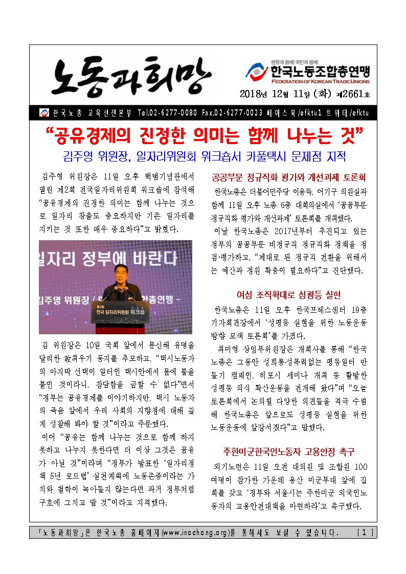 [Á¦2611È£] ±èÁÖ¿µ À§¿øÀå, ÀÏÀÚ¸®À§¿øÈ¸ ¿öÅ©¼ó¼ īǮÅýà ¹®Á¦Á¡ Áö