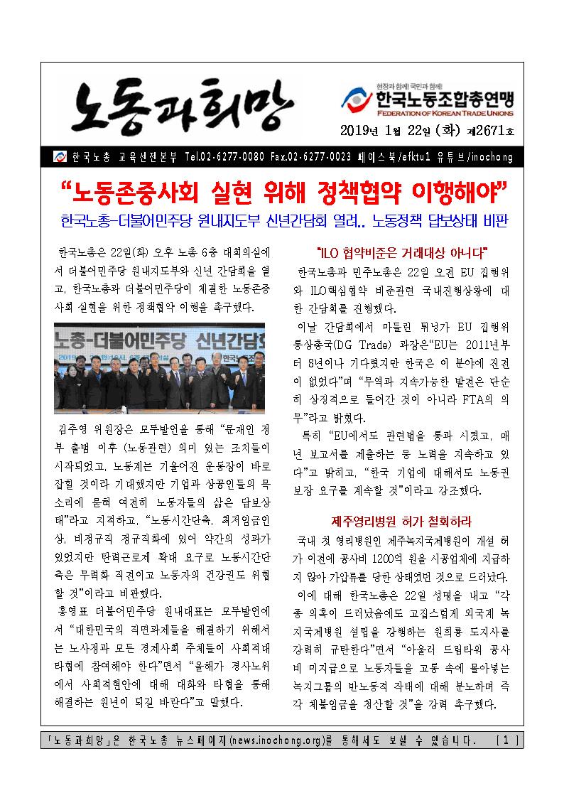 [Á¦2671È£] Çѱ¹³ëÃÑ-´õºÒ¾î¹ÎÁÖ´ç ¿ø³»ÁöµµºÎ ½Å³â°£´ãȸ, ³ëµ¿Á¸Áß»çȸ ½ÇÇö À§ÇØ Á¤Ã¥Çù¾à ÀÌÇàÇØ¾ß