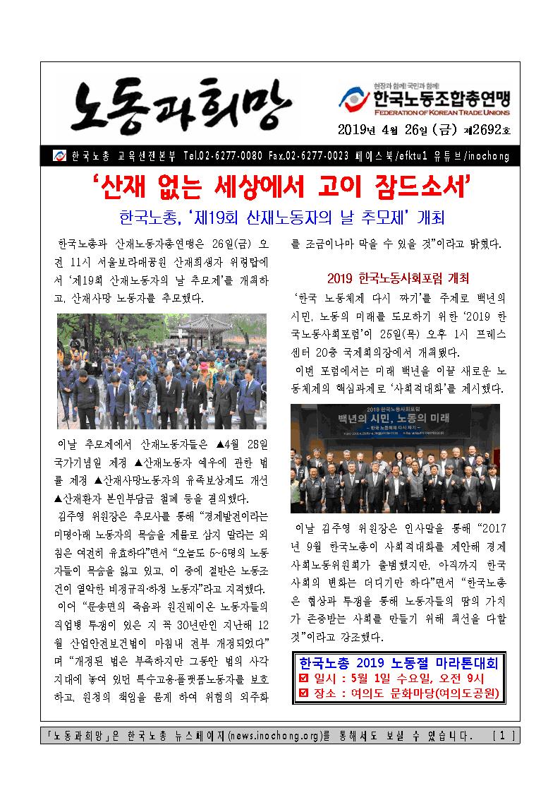 [Á¦2692È£] Çѱ¹³ëÃÑ, ¡®Á¦19ȸ »êÀç³ëµ¿ÀÚÀÇ ³¯ Ã߸ðÁ¦¡¯ °³ÃÖ