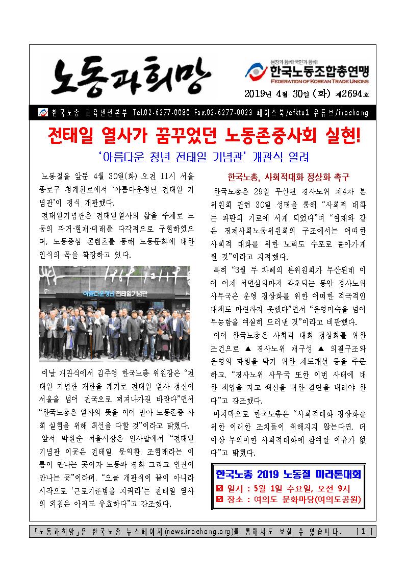 [Á¦2694È£] ÀüÅÂÀÏ ¿»ç°¡ ²Þ²Ù¾ú´ø ³ëµ¿Á¸Áß»çȸ ½ÇÇö!