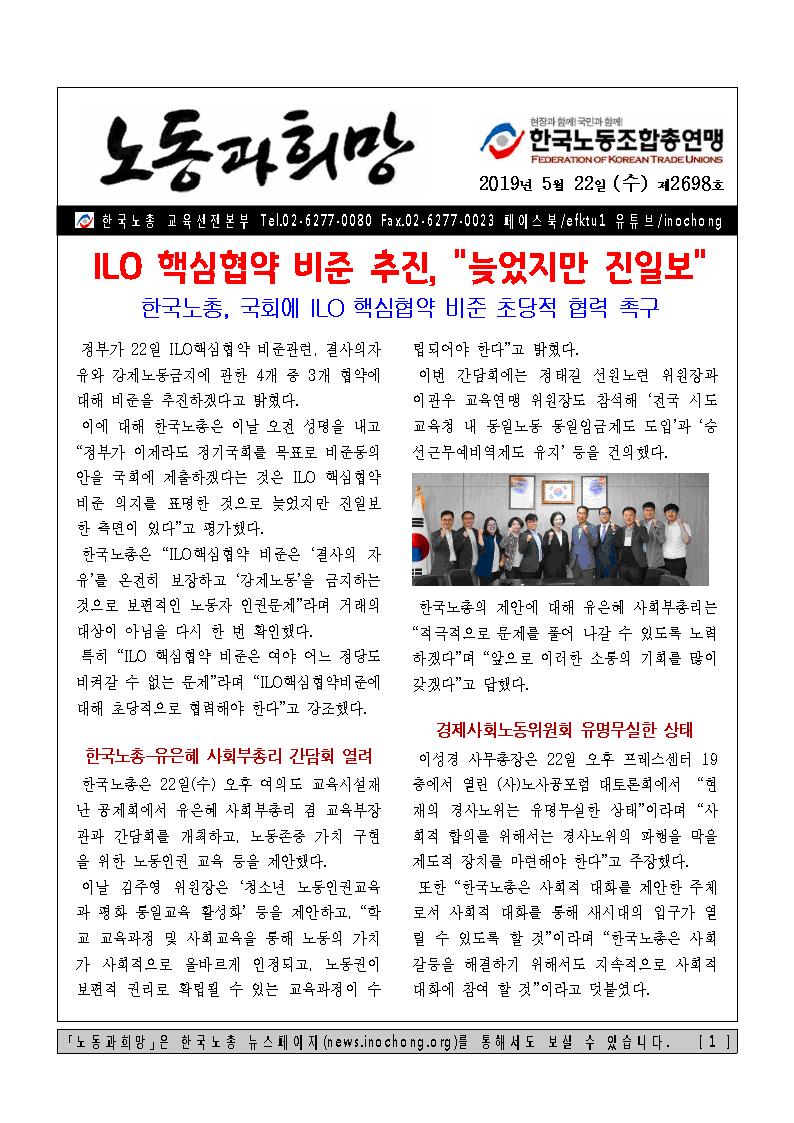[Á¦2698È£] ILO ÇÙ½ÉÇù¾à ºñÁØ ÃßÁø, "´Ê¾úÁö¸¸ ÁøÀϺ¸"