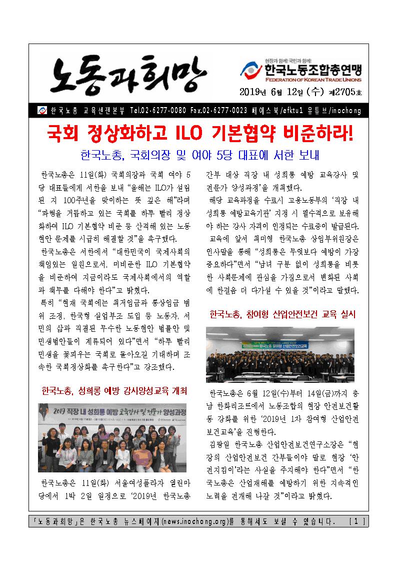 [Á¦2705È£] ±¹È¸ Á¤»óÈÇϰí ILO ±âº»Çù¾à ºñÁØÇ϶ó!