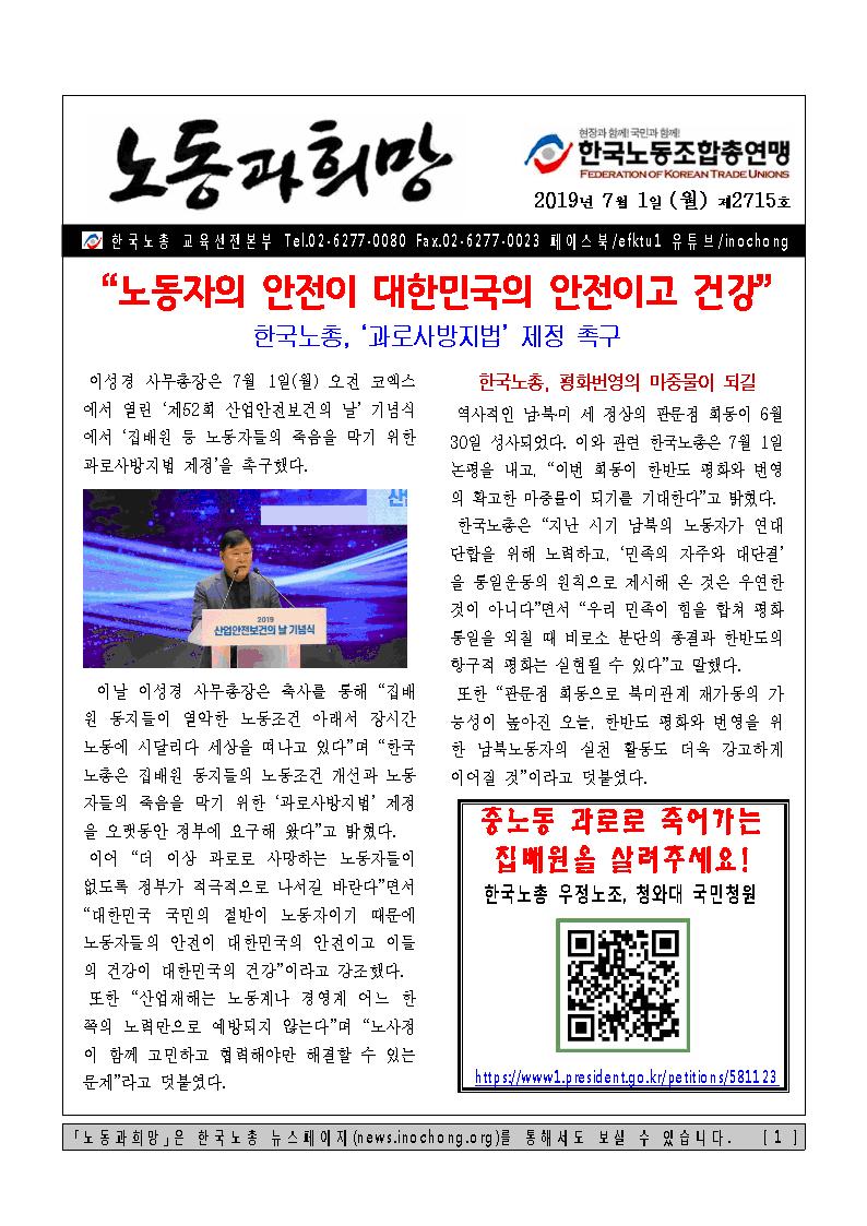 [Á¦2715È£] ¡°³ëµ¿ÀÚÀÇ ¾ÈÀüÀÌ ´ëÇѹα¹ÀÇ ¾ÈÀüÀÌ°í °Ç°¡±