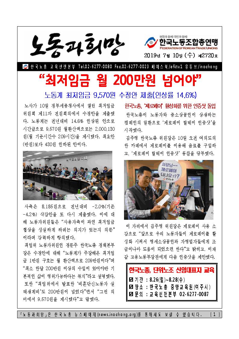 [Á¦2720È£] ³ëµ¿°è ÃÖÀúÀÓ±Ý 9,570¿ø ¼öÁ¤¾È Á¦Ãâ(Àλó·ü 14.6%)