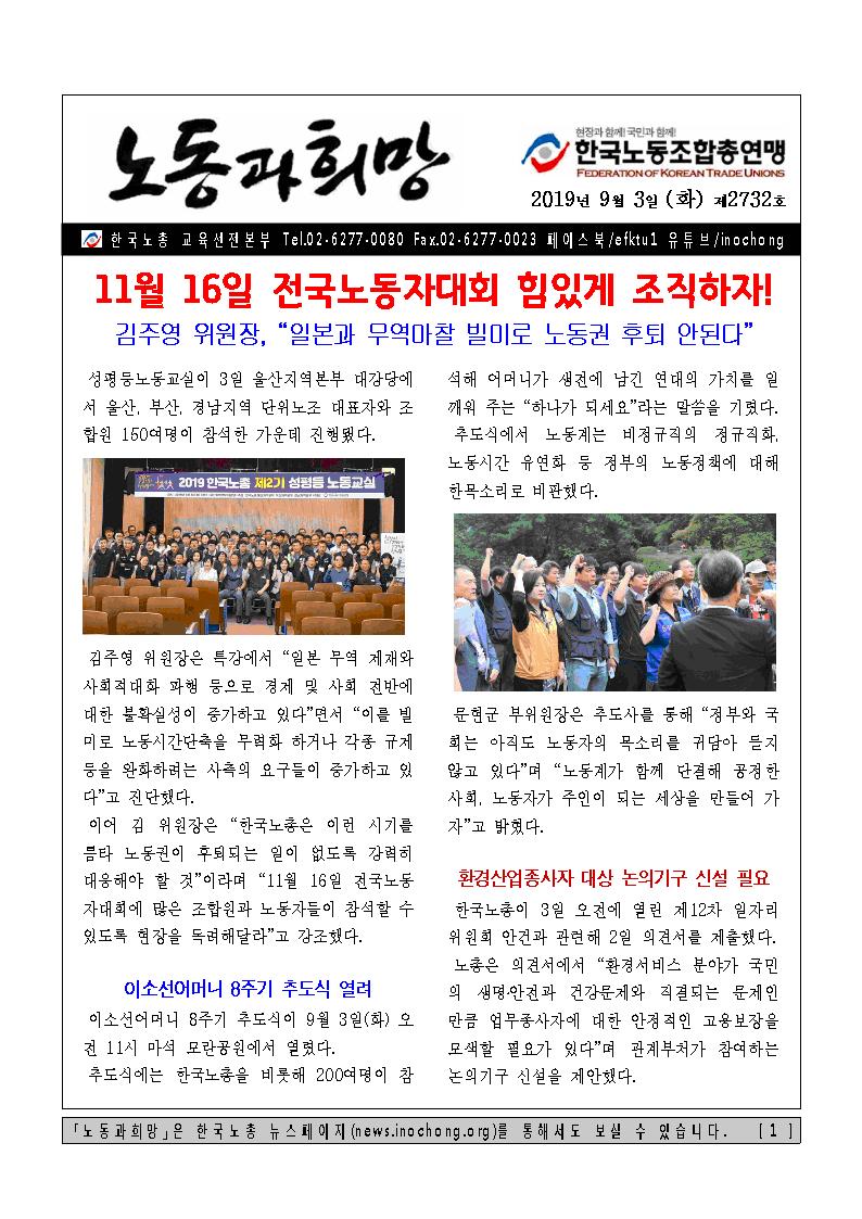 [Á¦2732È£] 11¿ù 16ÀÏ Àü±¹³ëµ¿ÀÚ´ëȸ ÈûÀÖ°Ô Á¶Á÷ÇÏÀÚ!