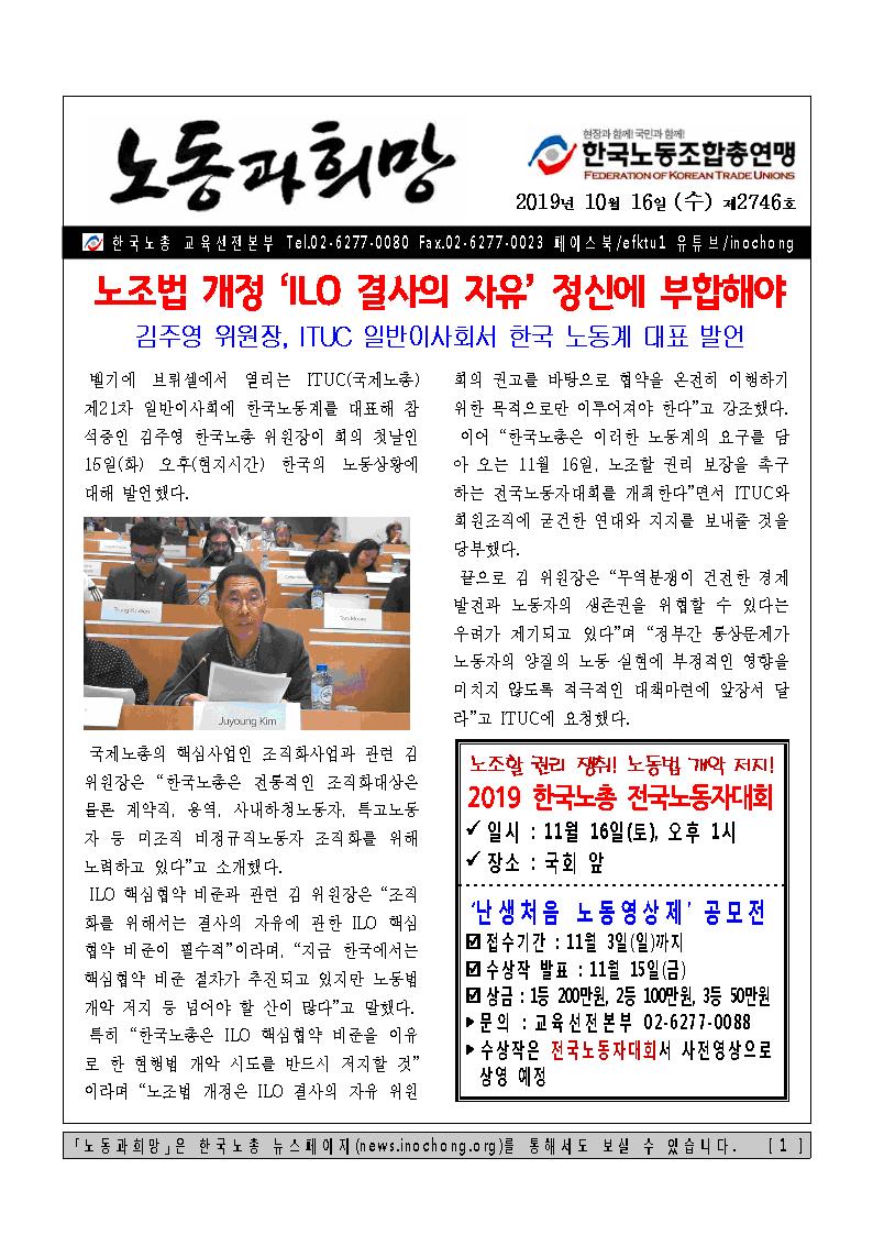 [Á¦2746È£] ³ëÁ¶¹ý °³Á¤ ¡®ILO °á»çÀÇ ÀÚÀ¯¡¯ Á¤½Å¿¡ ºÎÇÕÇØ¾ß