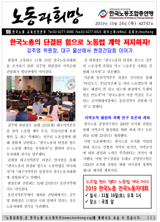 [Á¦2747È£] Çѱ¹³ëÃÑÀÇ ´Ü°áµÈ ÈûÀ¸·Î ³ëµ¿¹ý °³¾Ç ÀúÁöÇÏÀÚ!