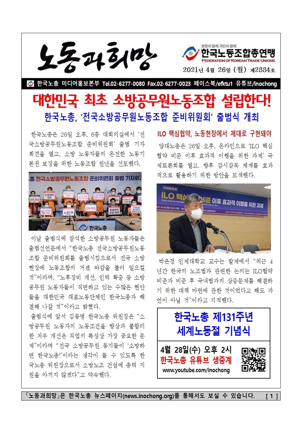 [Á¦2884È£] ´ëÇѹα¹ ÃÖÃÊ ¼Ò¹æ°ø¹«¿ø³ëµ¿Á¶ÇÕ ¼³¸³ÇÑ´Ù!