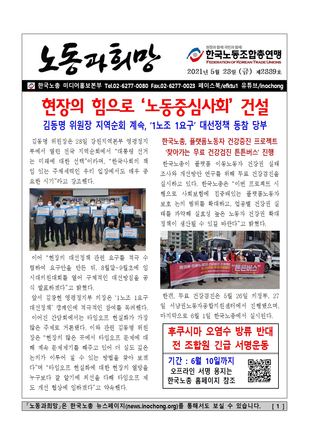 [Á¦2889È£] ÇöÀåÀÇ ÈûÀ¸·Î ¡®³ëµ¿Á߽ɻçȸ¡¯ °Ç¼³
