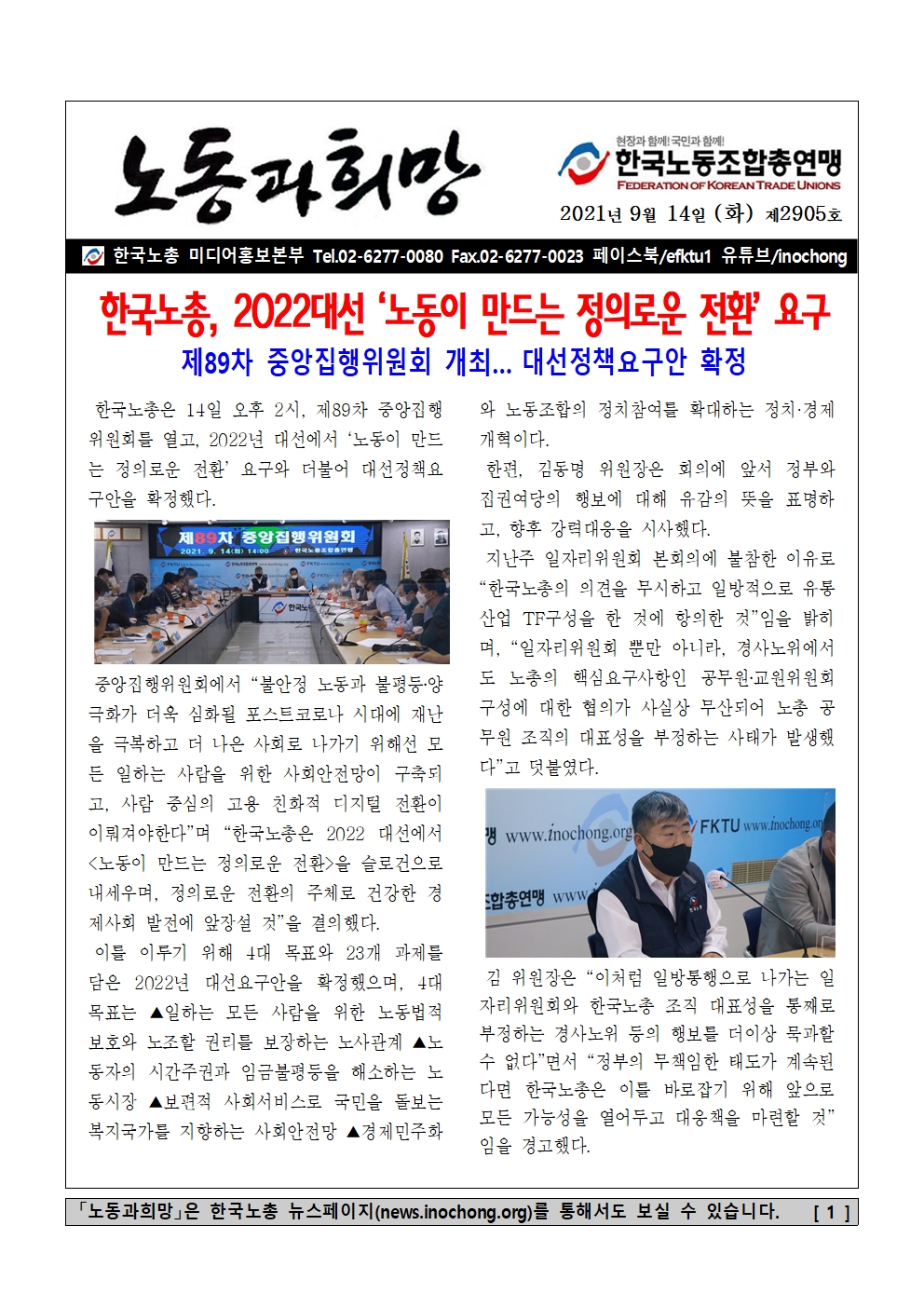 [Á¦2905È£] Çѱ¹³ëÃÑ, 2022´ë¼± '³ëµ¿ÀÌ ¸¸µå´Â Á¤ÀǷοî Àüȯ' ¿ä±¸