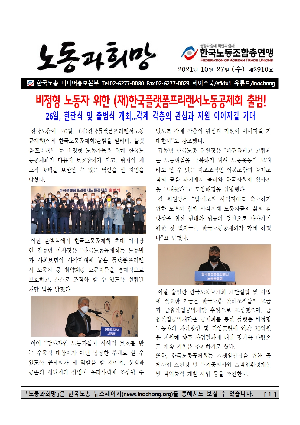 [Á¦2910È£] ºñÁ¤Çü ³ëµ¿ÀÚ À§ÇÑ (Àç)Çѱ¹Ç÷§ÆûÇÁ¸®·£¼³ëµ¿°øÁ¦È¸ Ãâ¹ü!