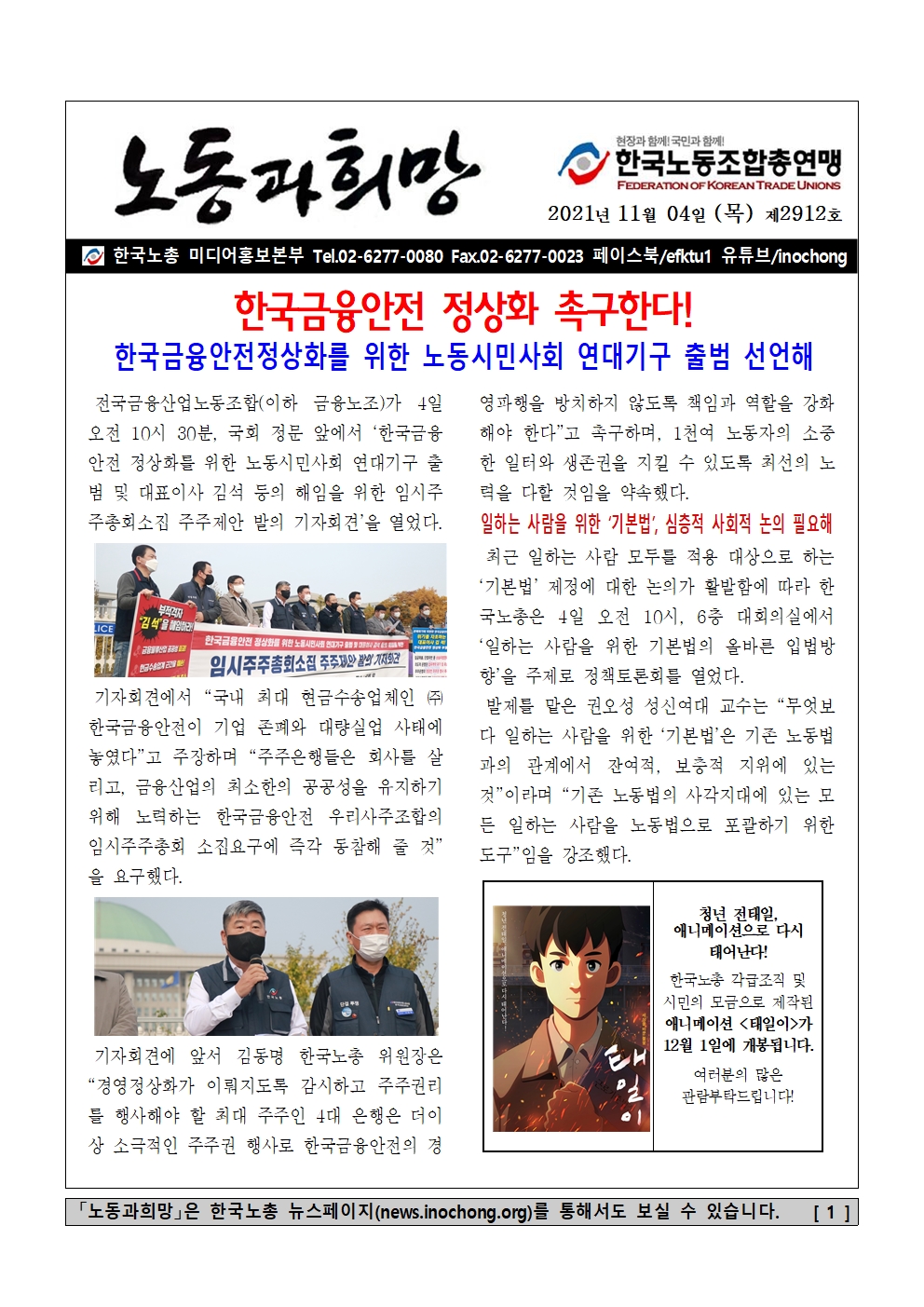 [Á¦2912È£] Çѱ¹±ÝÀ¶¾ÈÀü Á¤»óÈ Ã˱¸ÇÑ´Ù!
