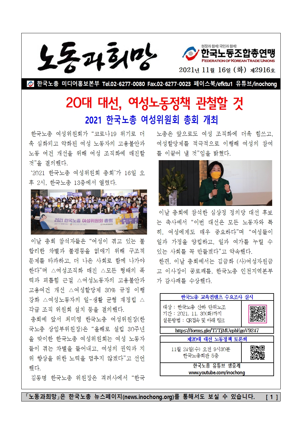 [Á¦2916È£] 20´ë ´ë¼±, ¿©¼º³ëµ¿Á¤Ã¥ °üöÇÒ °Í