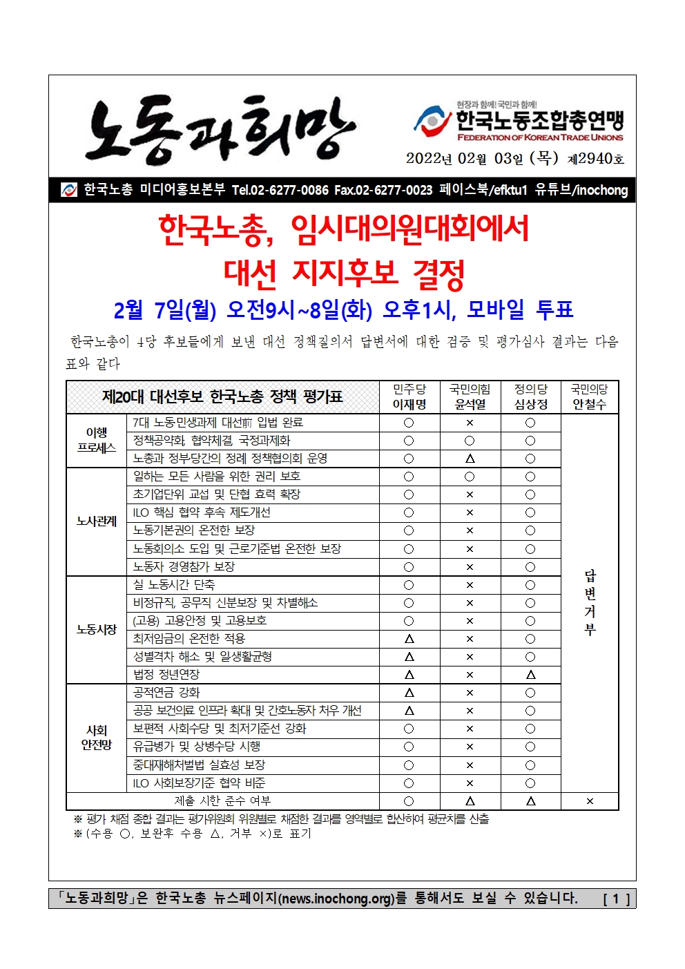 [Á¦2940È£]Çѱ¹³ëÃÑ, ÀӽôëÀÇ¿ø´ëȸ¿¡¼ ´ë¼± ÁöÁöÈĺ¸ °áÁ¤