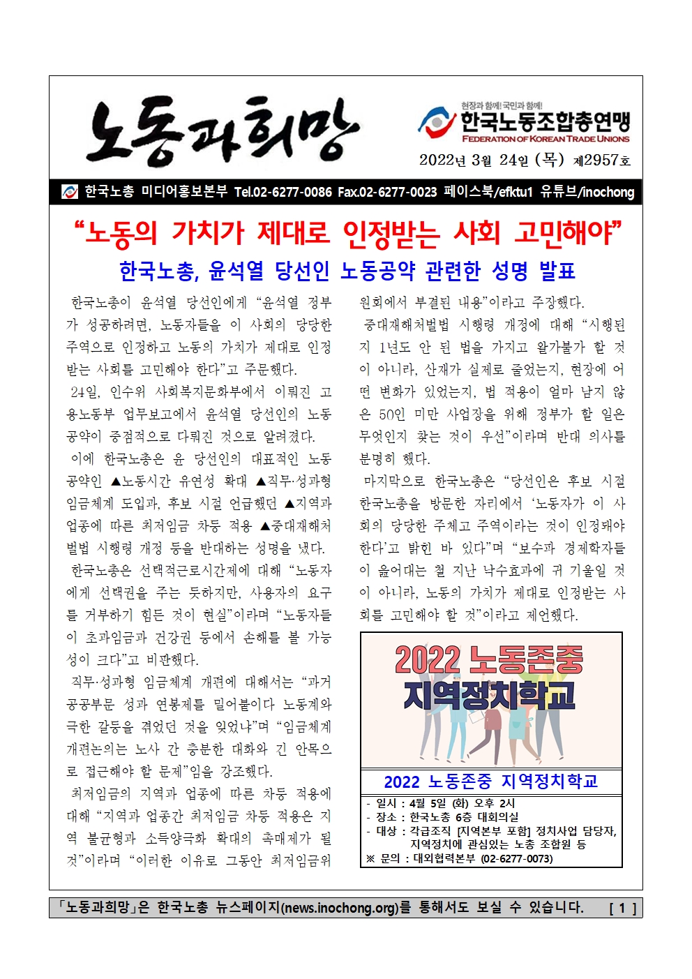 [Á¦2957È£]"³ëµ¿ÀÇ °¡Ä¡°¡ Á¦´ë·Î ÀÎÁ¤¹Þ´Â »çȸ °í¹ÎÇØ¾ß"