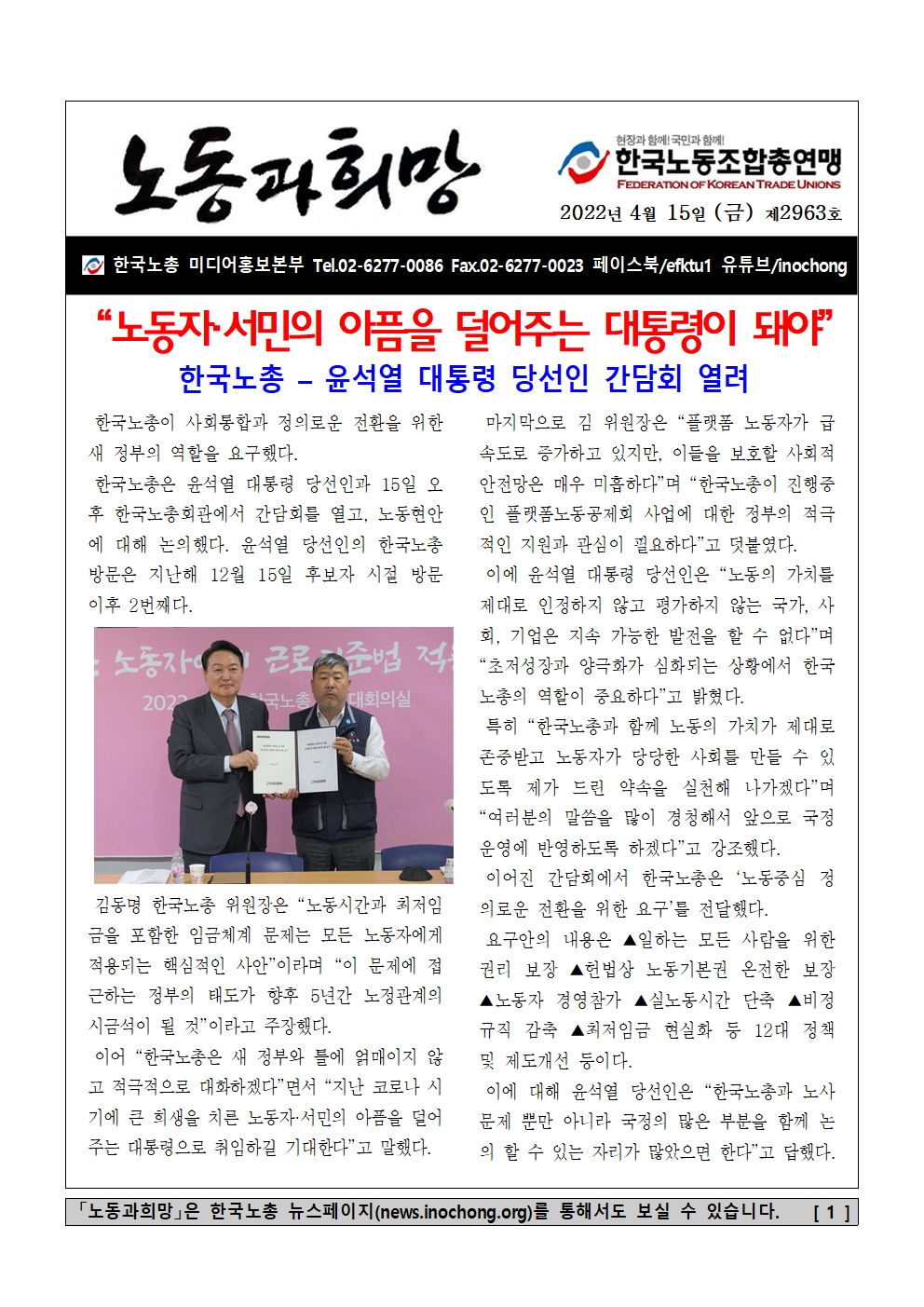 [Á¦2963È£]¡°³ëµ¿ÀÚ¡¤¼¹ÎÀÇ ¾ÆÇÄÀ» ´ú¾îÁÖ´Â ´ëÅë·ÉÀÌ µÅ¾ß¡±