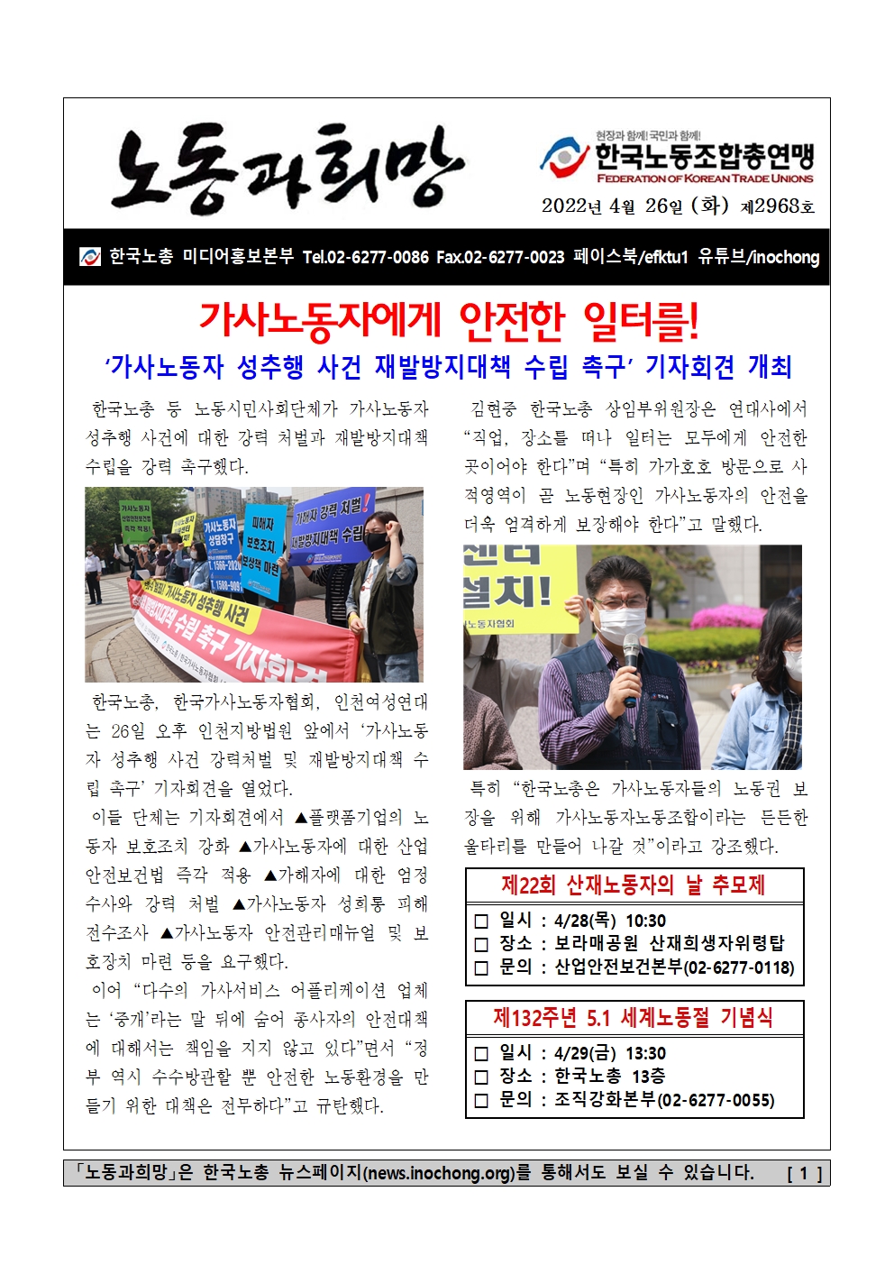 [Á¦2968È£] °¡»ç³ëµ¿ÀÚ¿¡°Ô ¾ÈÀüÇÑ ÀÏÅ͸¦!