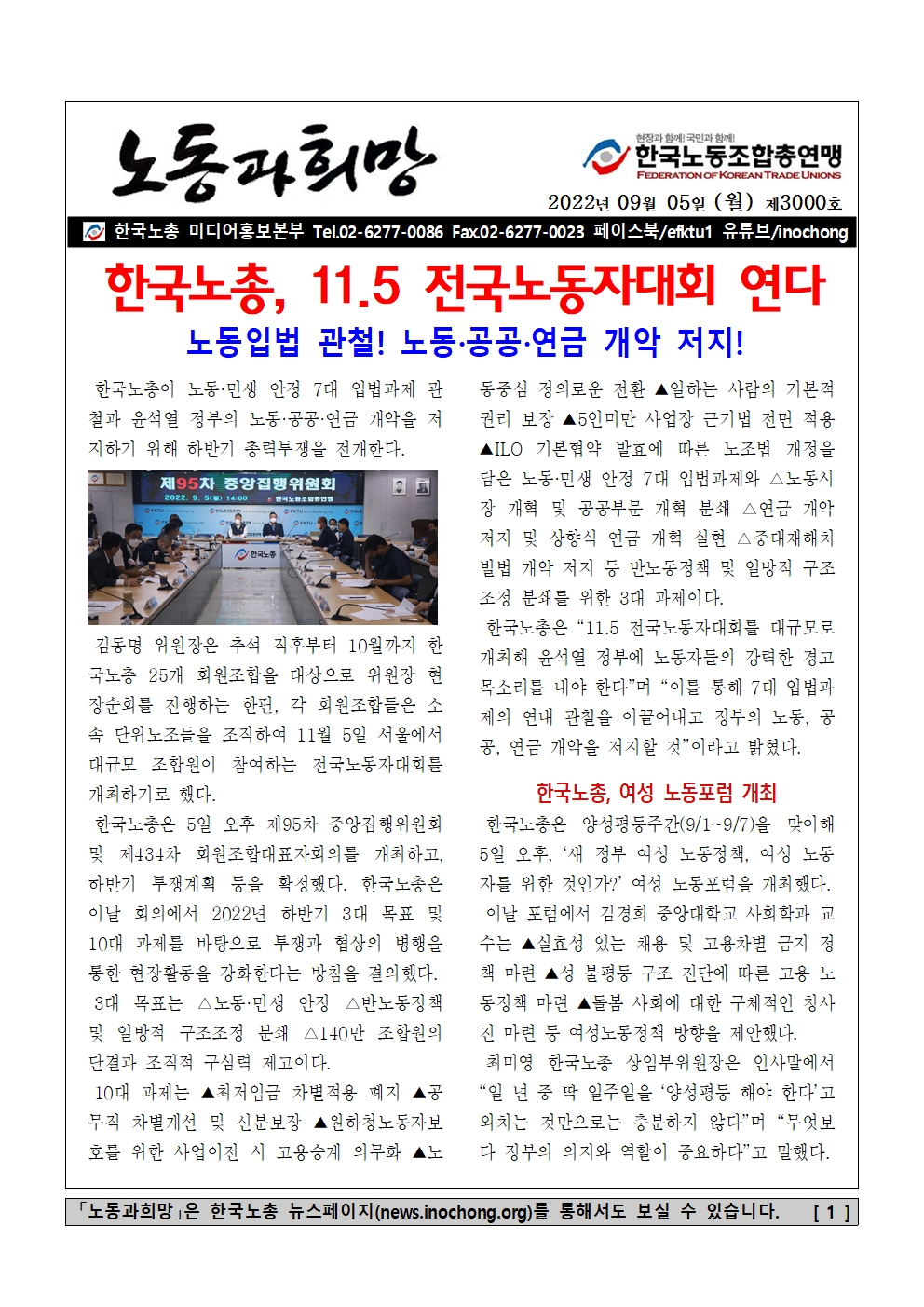 [Á¦3000È£] Çѱ¹³ëÃÑ, 11.5 Àü±¹³ëµ¿ÀÚ´ëȸ ¿¬´Ù