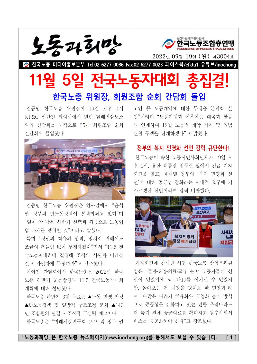 [Á¦3004È£] 11¿ù 5ÀÏ Àü±¹³ëµ¿ÀÚ´ëȸ ÃÑÁý°á!