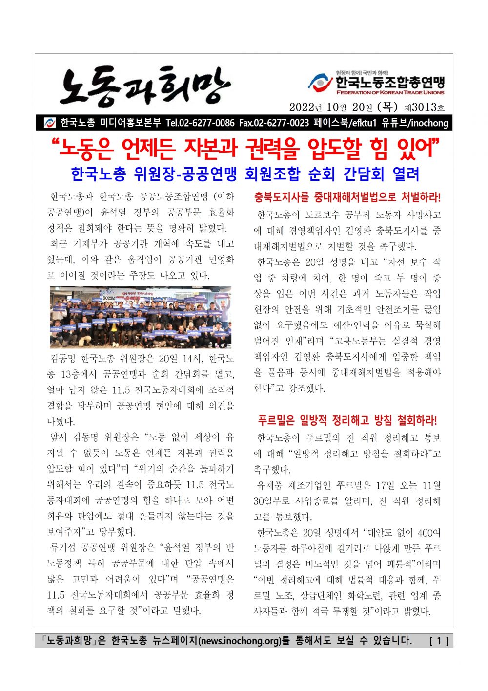 [Á¦3013È£]"³ëµ¿Àº ¾ðÁ¦µç ÀÚº»°ú ±Ç·ÂÀ» ¾ÐµµÇÒ Èû ÀÖ¾î"