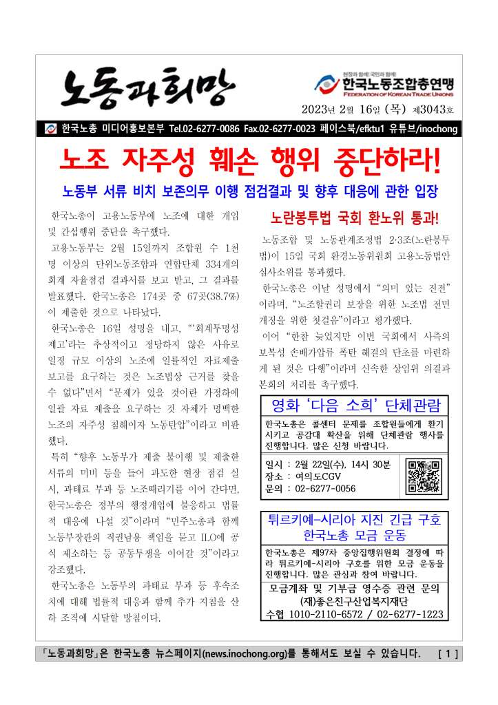 [Á¦3043È£] ³ëÁ¶ ÀÚÁÖ¼º ÈÑ¼Õ ÇàÀ§ Áß´ÜÇ϶ó!