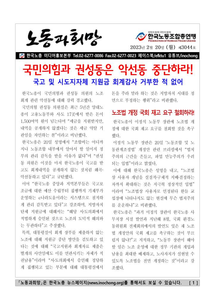 [Á¦3044È£] ±¹¹ÎÀÇÈû°ú ±Ç¼ºµ¿Àº ¾Ç¼±µ¿ Áß´ÜÇ϶ó!