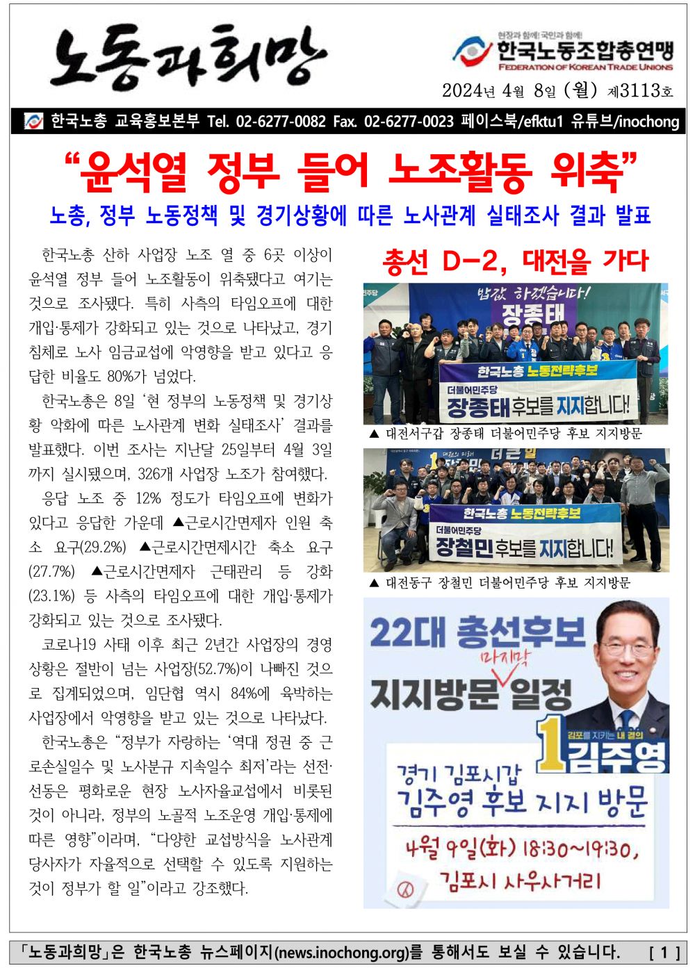 [Á¦3113È£] ¡°À±¼®¿ Á¤ºÎ µé¾î ³ëÁ¶È°µ¿ À§Ãࡱ