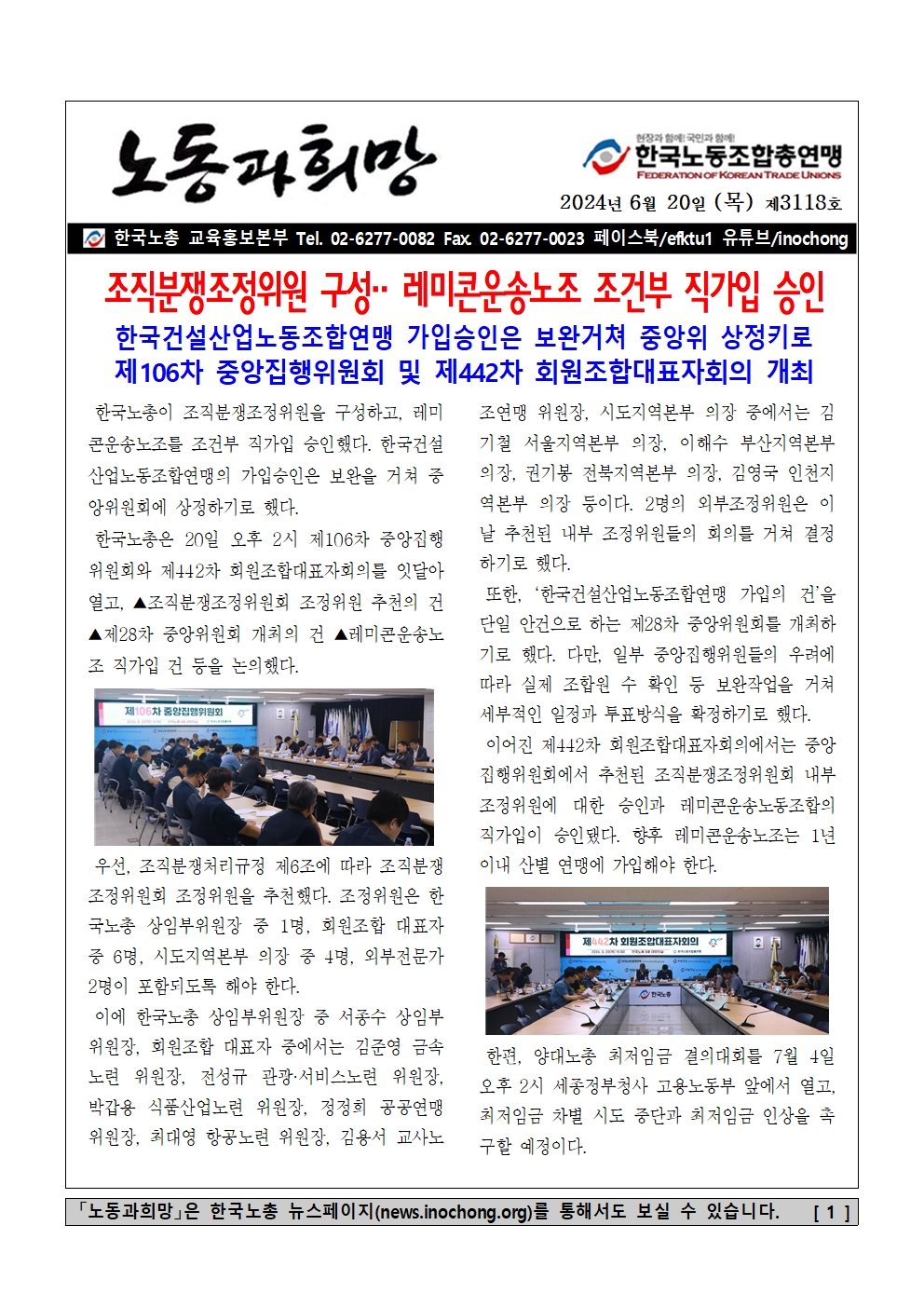 [Á¦3118È£] Á¶Á÷ºÐÀïÁ¶Á¤À§¿ø ±¸¼º.. ·¹¹ÌÄÜ¿î¼Û³ëÁ¶ Á¶°ÇºÎ Á÷°¡ÀÔ ½ÂÀÎ