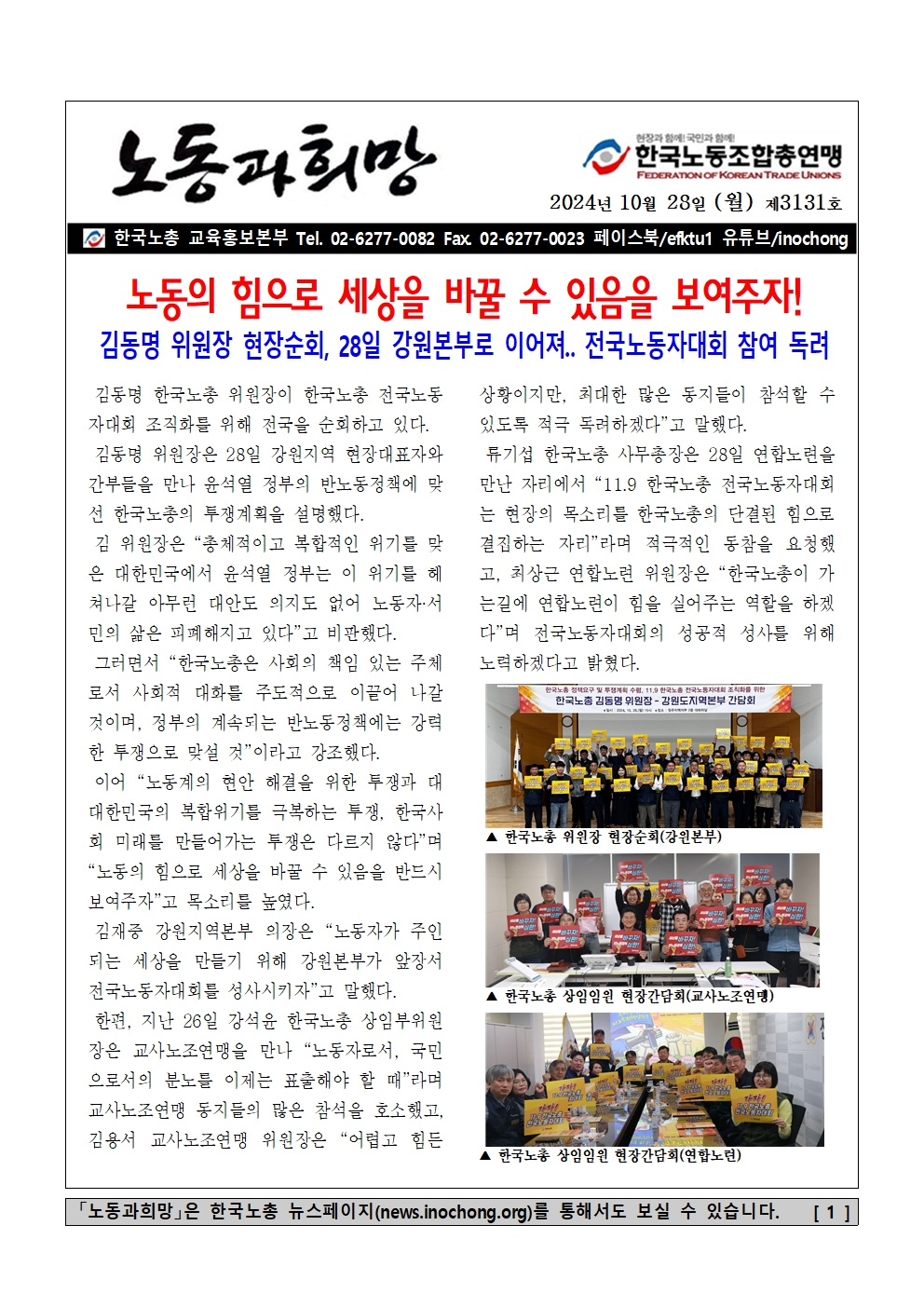 [Á¦3131È£] ³ëµ¿ÀÇ ÈûÀ¸·Î ¼¼»óÀ» ¹Ù²Ü ¼ö ÀÖÀ½À» º¸¿©ÁÖÀÚ!