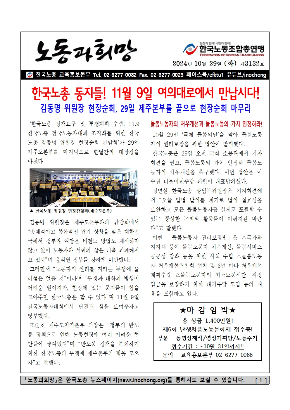 [Á¦3132È£] Çѱ¹³ëÃÑ µ¿Áöµé! 11¿ù 9ÀÏ ¿©ÀÇ´ë·Î¿¡¼ ¸¸³³½Ã´Ù!