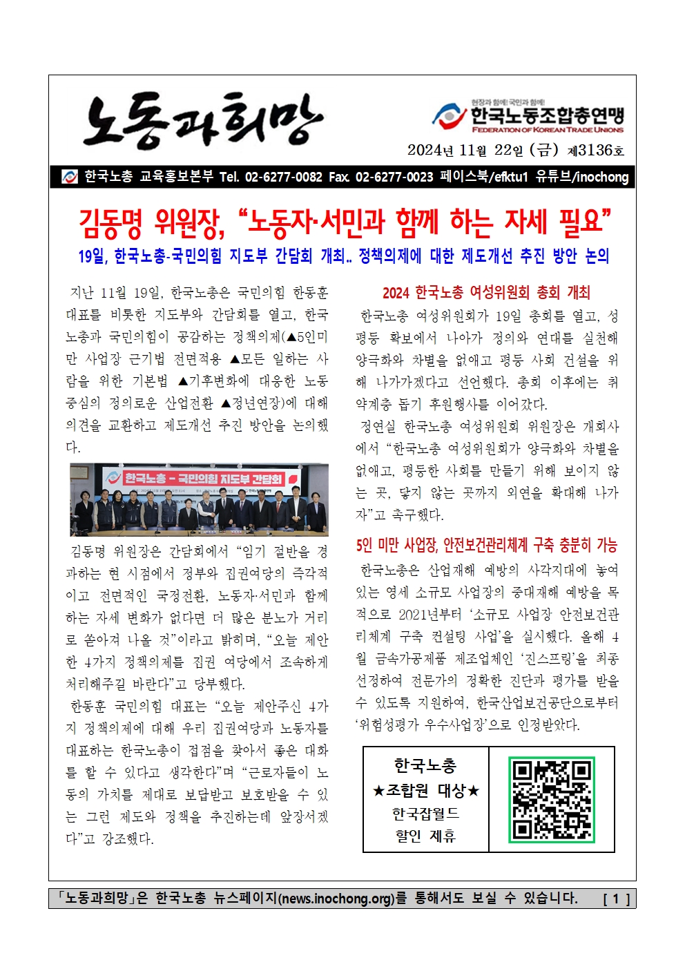 [Á¦3136È£] ±èµ¿¸í À§¿øÀå, "³ëµ¿ÀÚ.¼¹Î°ú ÇÔ²² ÇÏ´Â ÀÚ¼¼ ÇÊ¿ä"