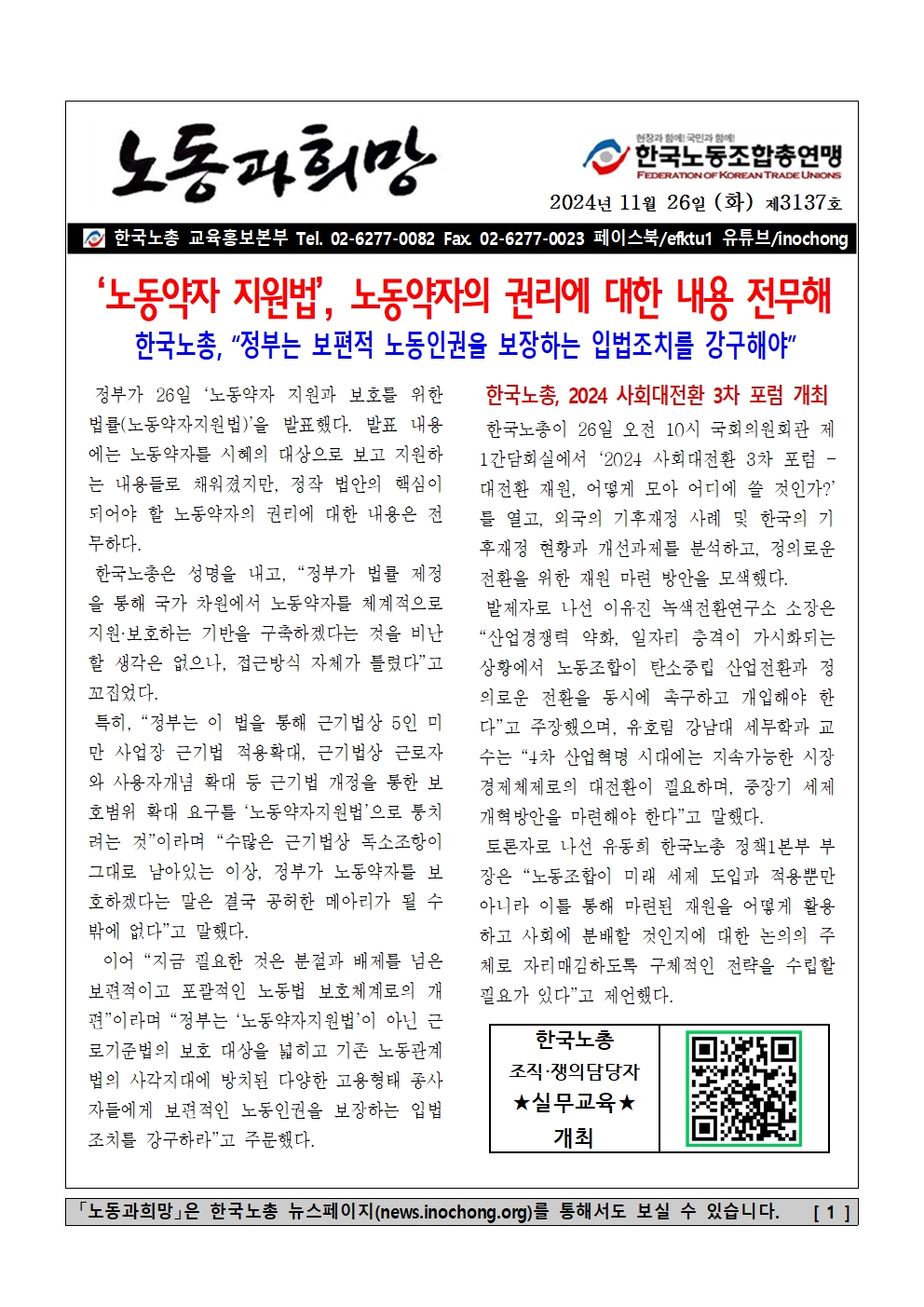 [Á¦3137È£] '³ëµ¿¾àÀÚ Áö¿ø¹ý', ³ëµ¿¾àÀÚÀÇ ±Ç¸®¿¡ ´ëÇÑ ³»¿ë Àü¹«ÇØ