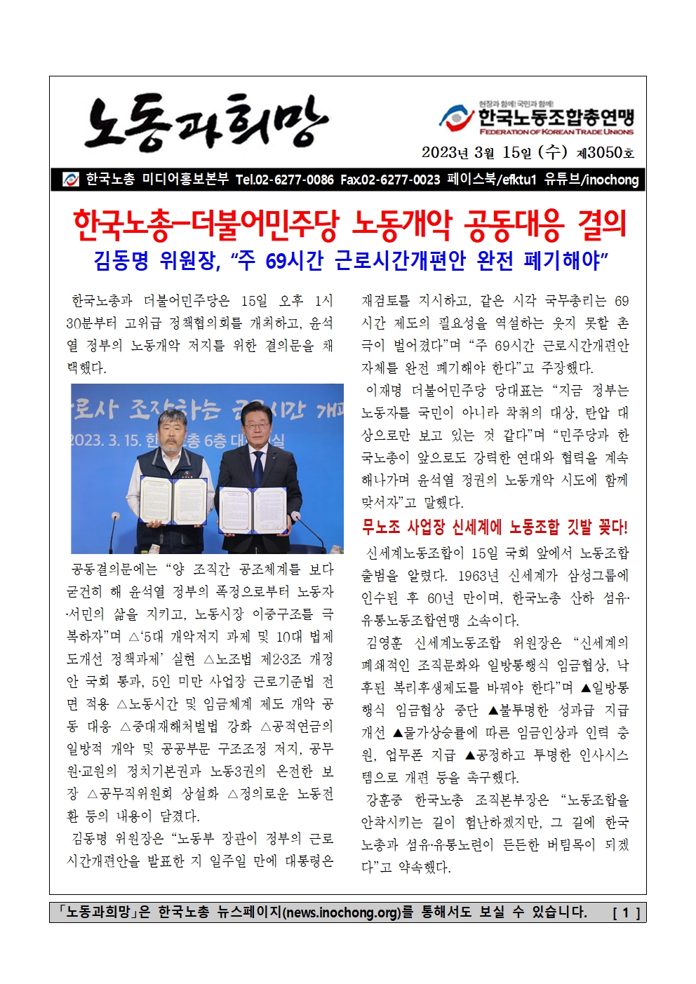 [Á¦3063È£] ´õ ³ªÀº ³ëµ¿ÀÇ ¿À´Ã, ³ëµ¿Á¸Áß»çȸ·Î °¡´Â ÈûÂù ¿¬´ë!