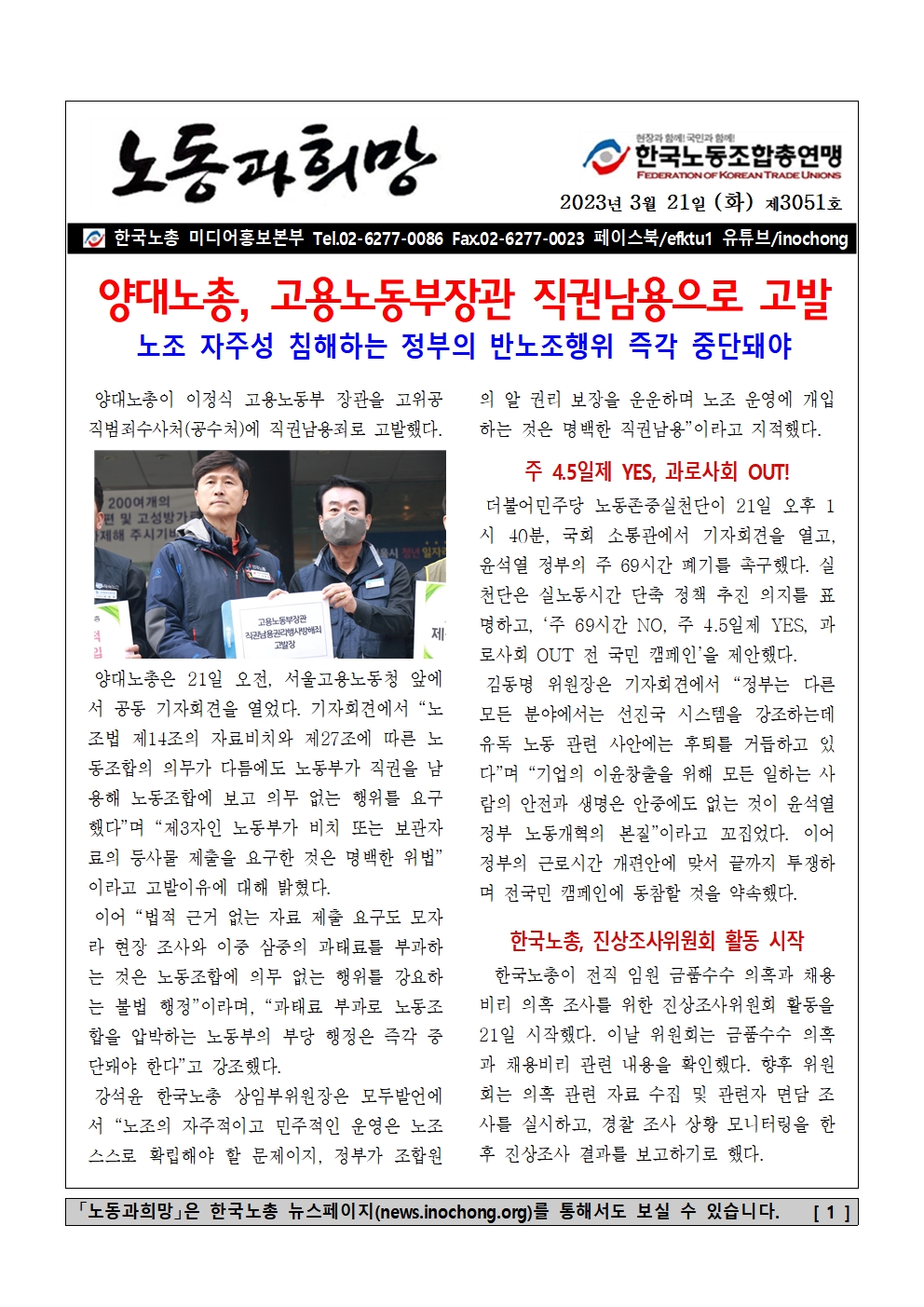 [Á¦3060È£] "Á¤ºÎÀÇ ³ëµ¿°³¾Ç¿¡ ±¼º¹ÇÏ´Â ÀÏÀº °á´ÜÄÚ ¾øÀ» °Í"