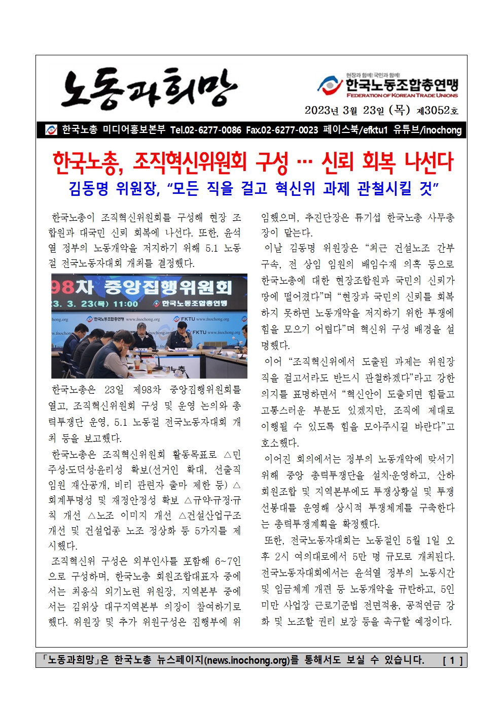 [Á¦3052È£] Çѱ¹³ëÃÑ, Á¶Á÷Çõ½ÅÀ§¿øÈ¸ ±¸¼º ¡¦ ½Å·Ú ȸº¹ ³ª¼±´Ù