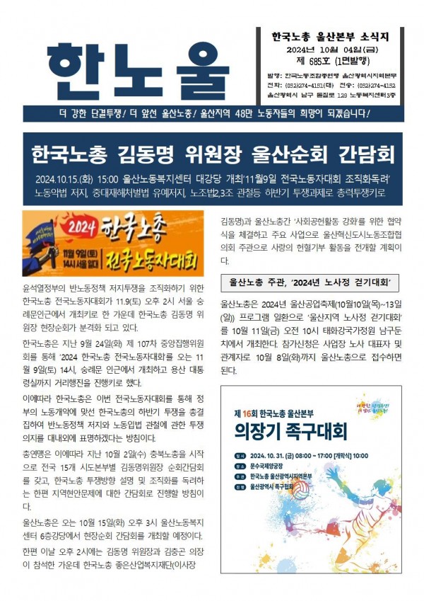 Çѳë¿ï 685È£ Çѱ¹³ëÃÑ ±èµ¿¸í À§¿øÀå ¿ï»ê¼øÈ¸ °£´ãȸ