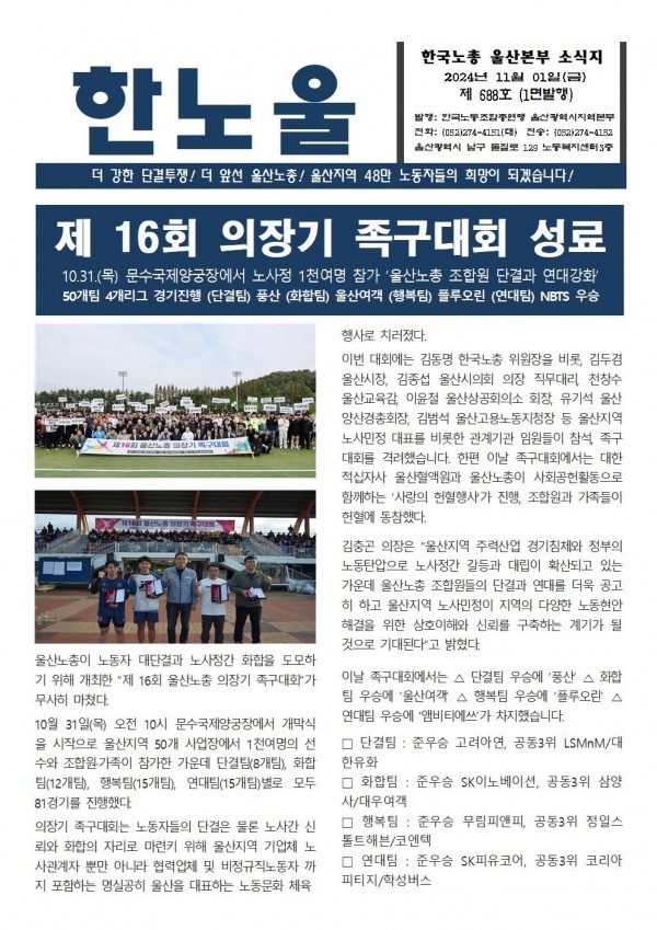 Çѳë¿ï 688È£ Á¦ 16ȸ ÀÇÀå±â Á·±¸´ëȸ ¼º·á